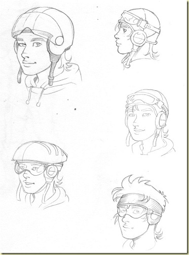 Passando alle tavole del fumetto, come detto in precedenza io ne ho realizzate sole 3, di cui le prime due a matita. Qui sotto si possono vedere altri studi di Theo, e poi il bozzetto della prima tavola (cliccarci su per ingrandirle).